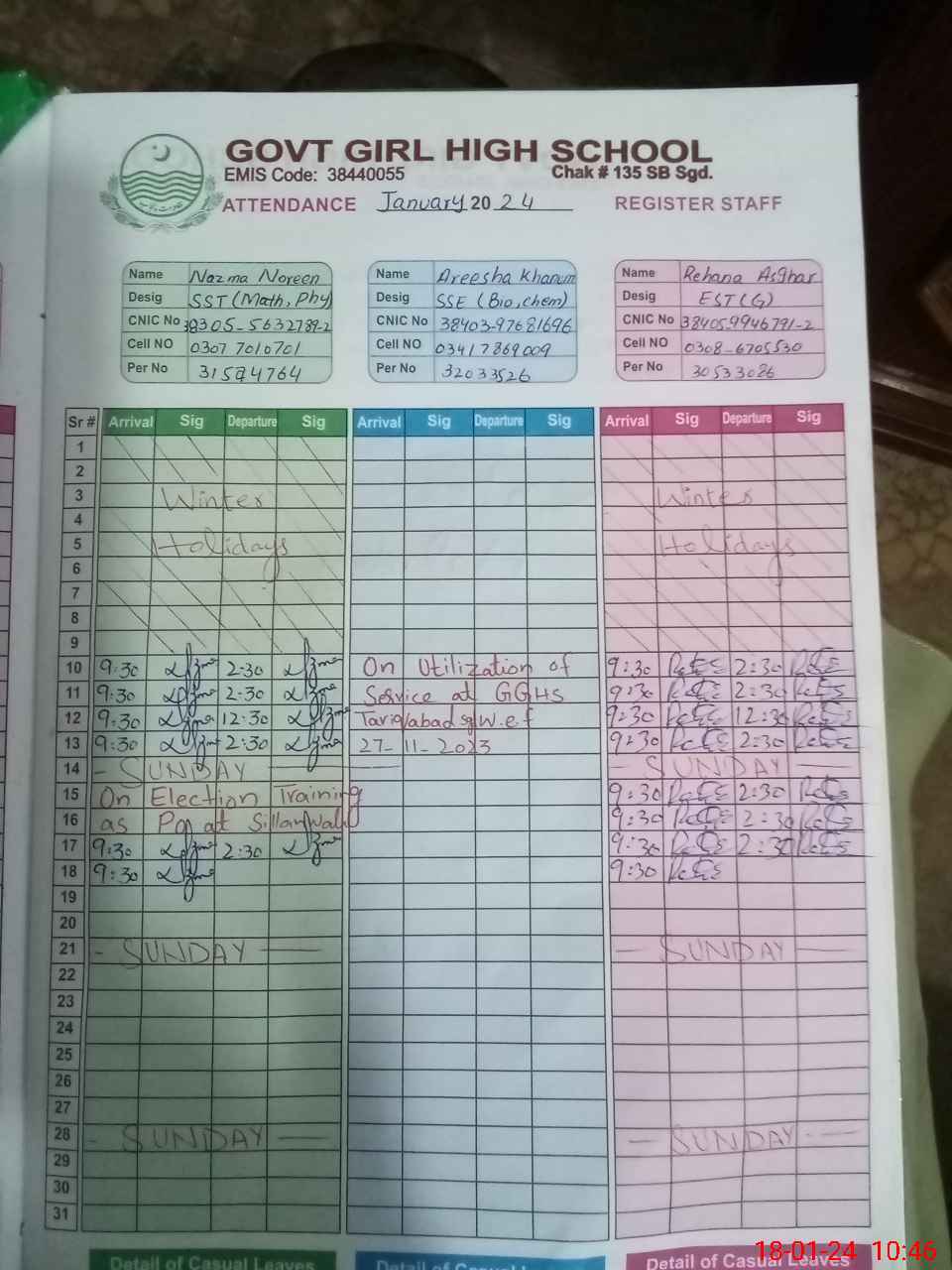 | Remarks (Use Separate Page if Required): Areesha khanum SSE temporary attached to GGHS Tariq Abad W E F 27 Nov 2023 | |||||