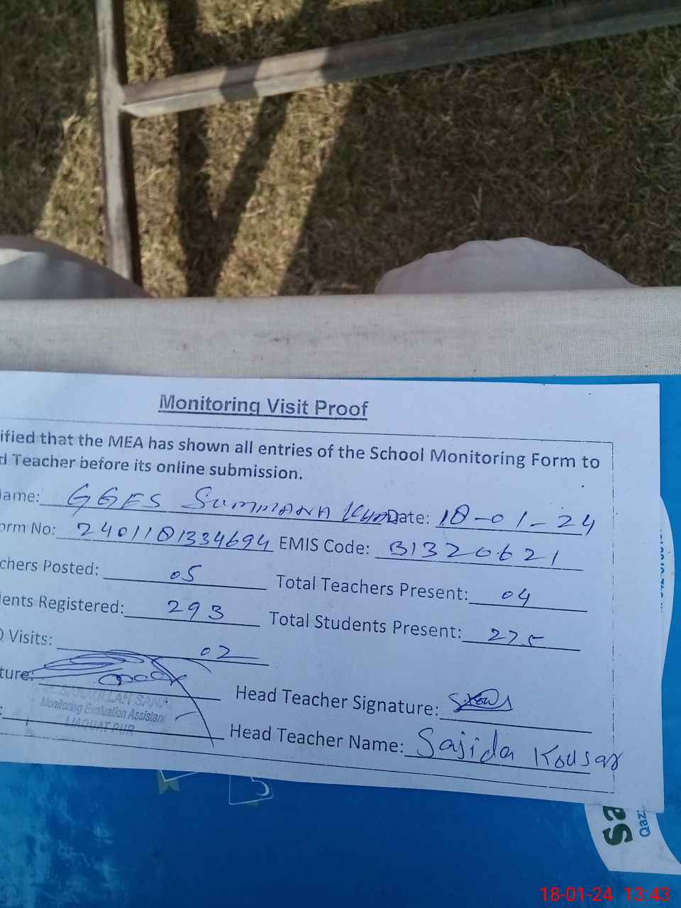 | Monitoring Date: 18-01-2024 | Start Time: 18-01-2024 01:01 PM | End Time: 18-01-2024 01:44 PM | Name of MEA: Mu**** Sa**** Ul**** Sa**** | |