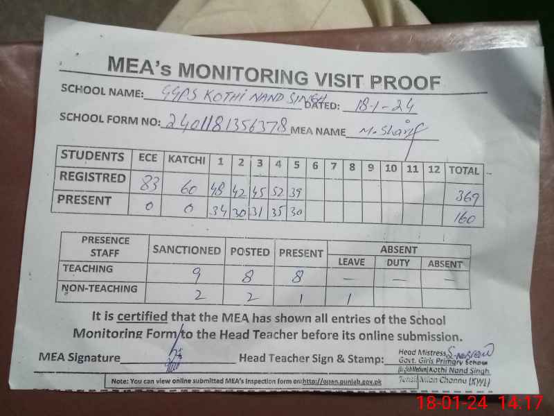 | EMIS Code: 36430269 | Name of School: GGPS KOTHI NAND SINGH, MIAN CHANNU | |||