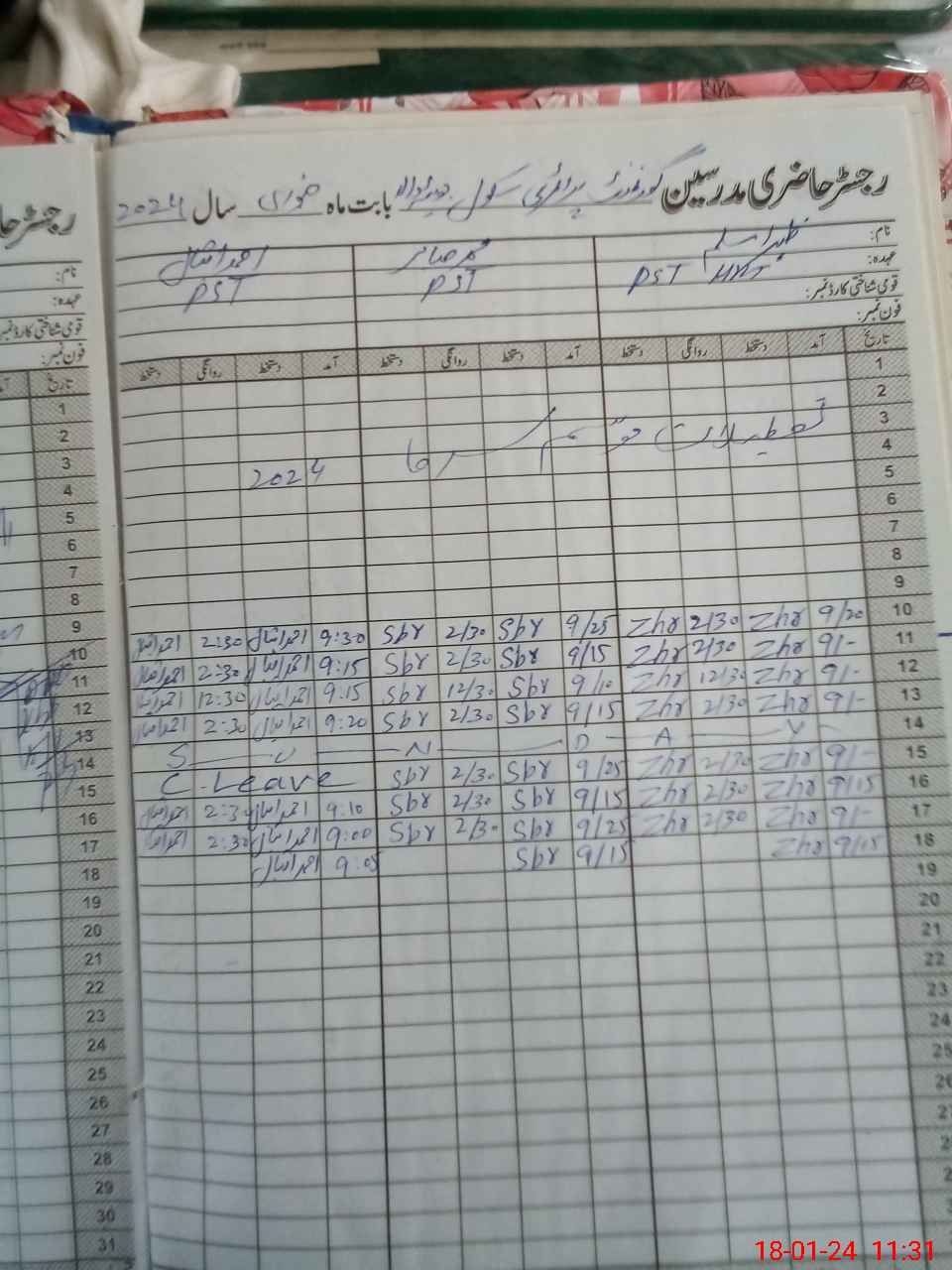 | CNIC | Full Name | Designation | R/C | Absence During Last Calender Month |