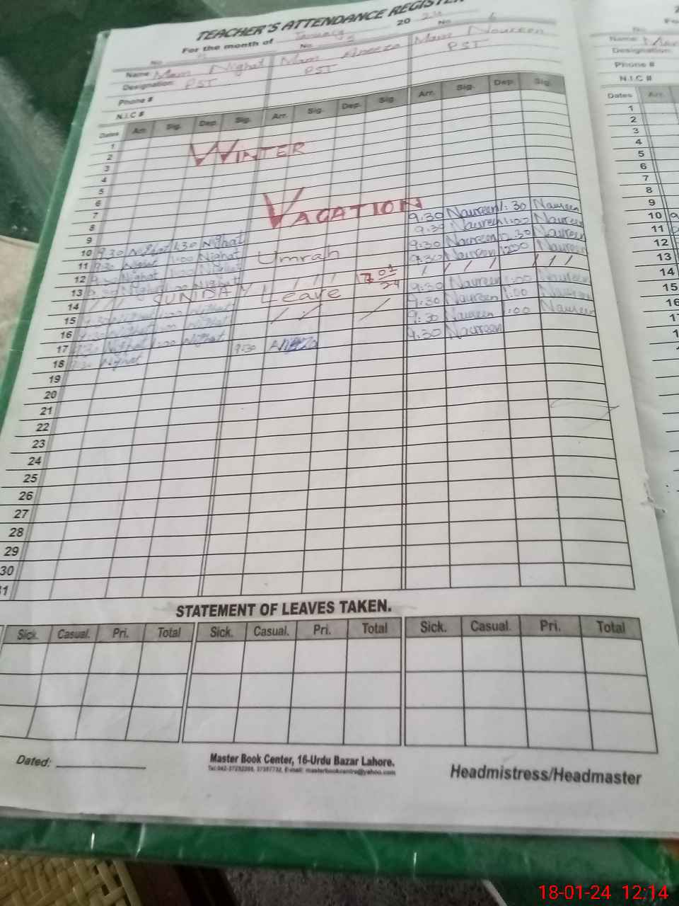 | Name: RU**** IJ**** Designation: (School Headmaster's/Headmistress's) EST(GENERAL) Phone/Cell Number: 03**** |