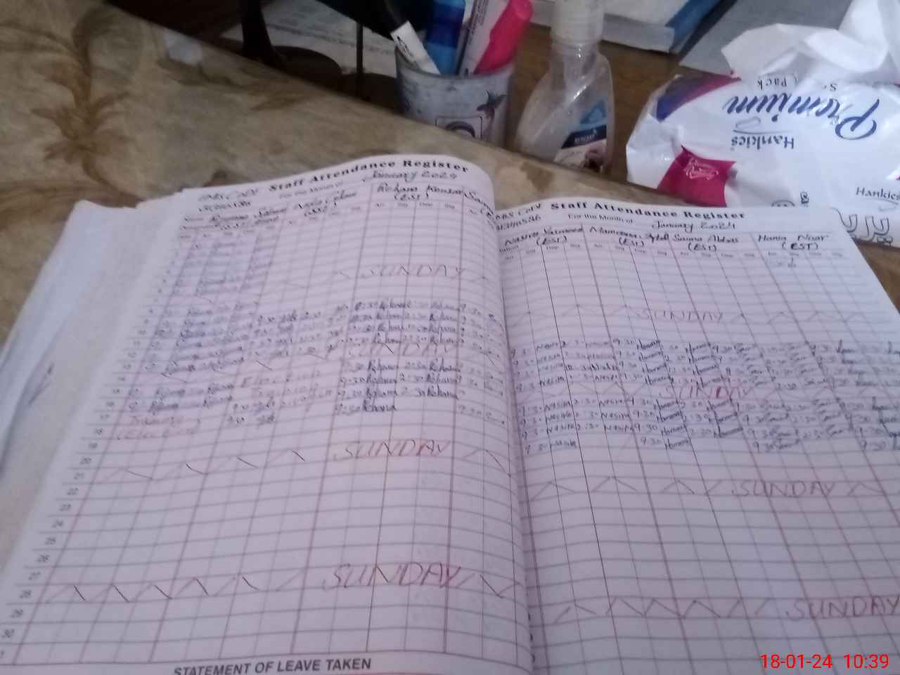 | Leave | Duty | Absent | Maternity | Medical | Ex- Pak |