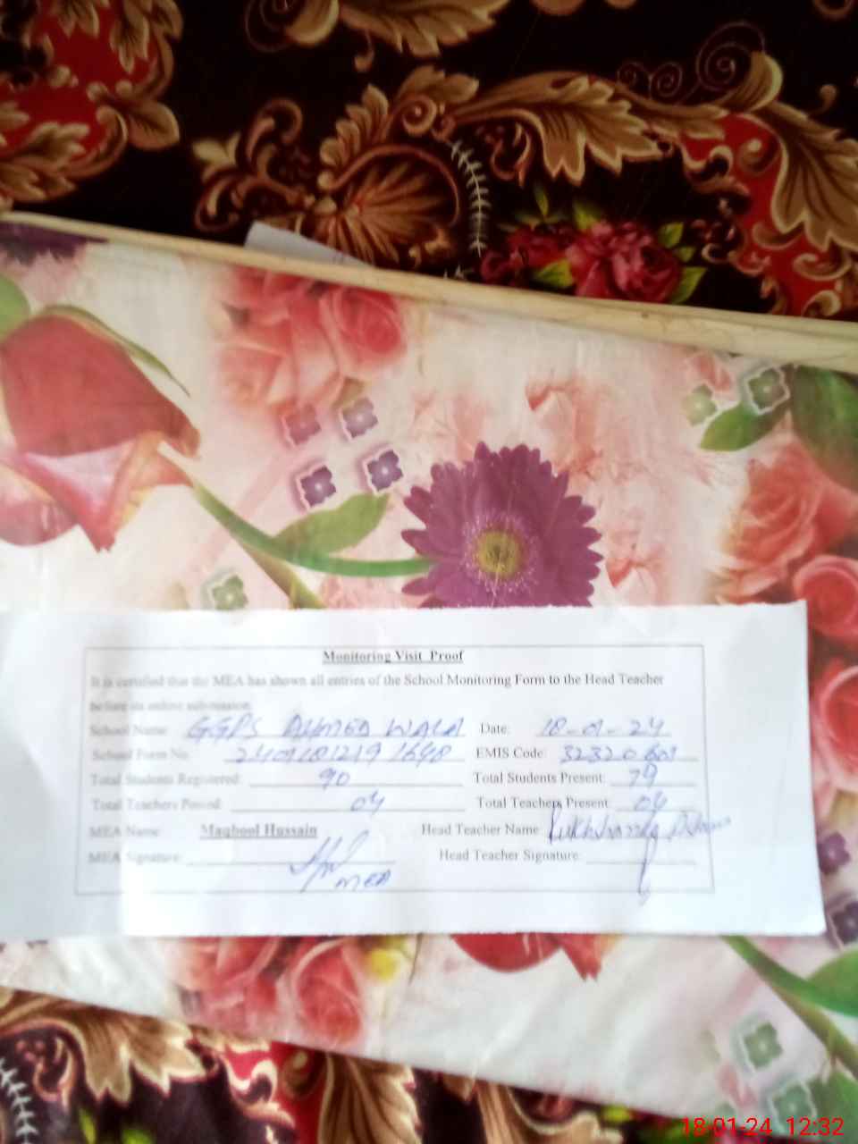 | EMIS Code: 32320601 | Name of School: GGPS AHMAD WALA | |||