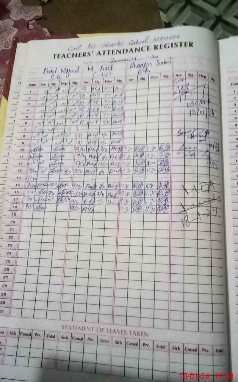| CNIC | Full Name | Designation | R/C | Absence During Last Calender Month |