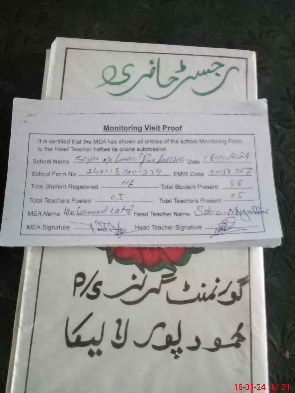 | EMIS Code: 31150357 | Name of School: GGPS MEHMOOD PUR LALAKEKA | |||