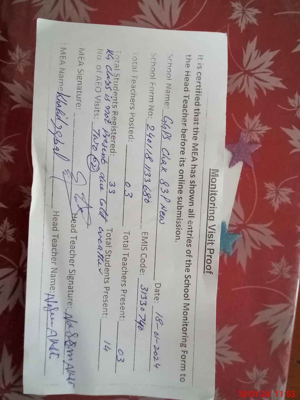 | EMIS Code: 31330740 | Name of School: GGPS CHAK NO. 83/P NEW | |||