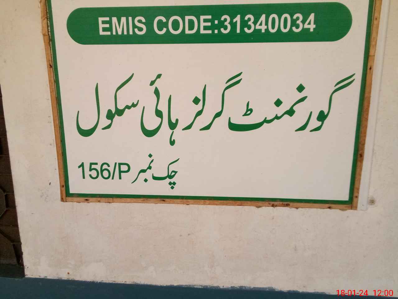 | EMIS Code: 31340034 | Name of School: GGHS CHAK NO. 156/P | |||