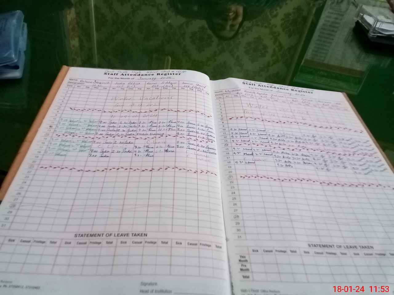 | Leave | Duty | Absent | Maternity | Medical | Ex- Pak |