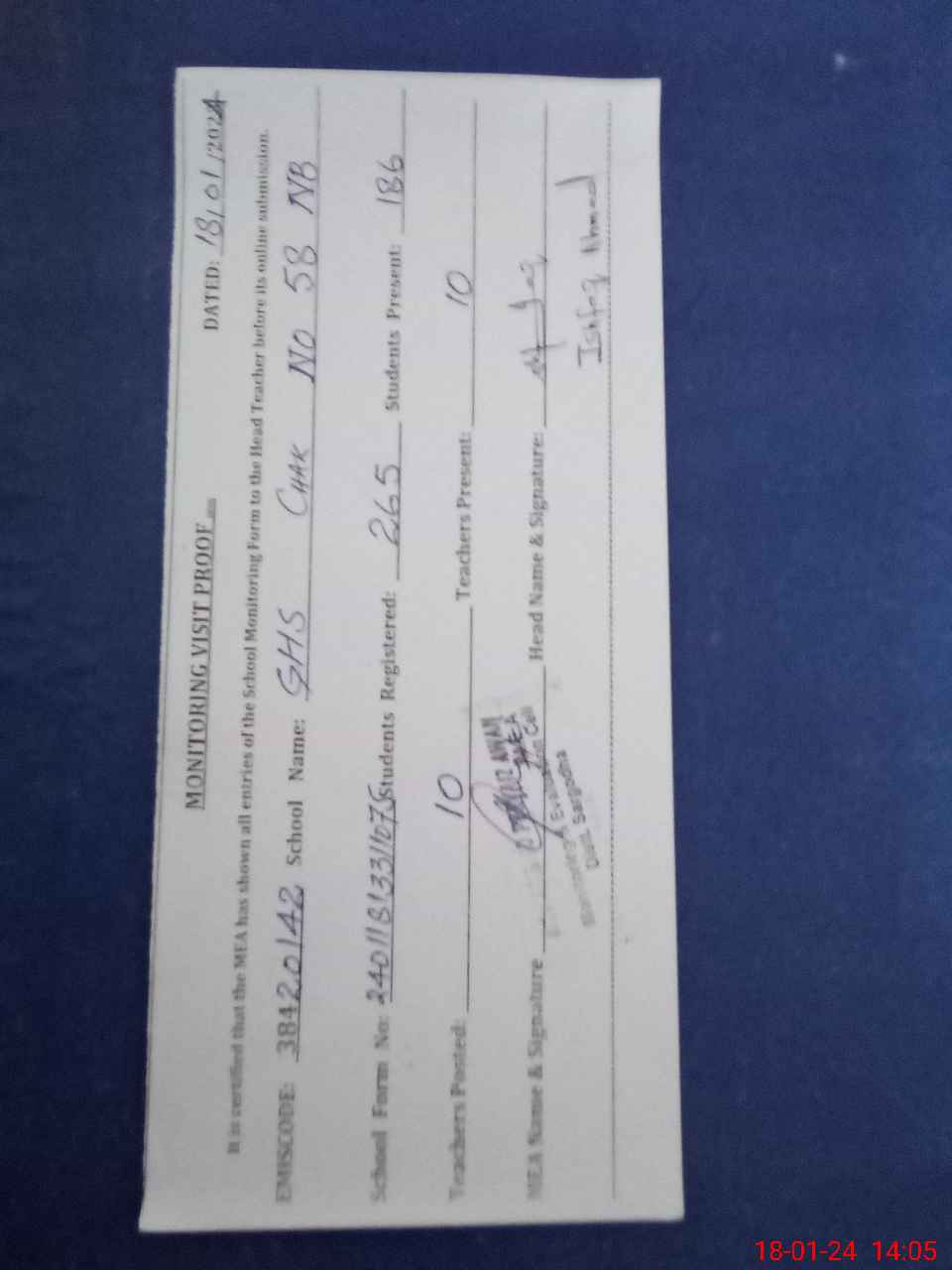 | EMIS Code: 38420142 | Name of School: GHS CHAK NO.58 NB | |||