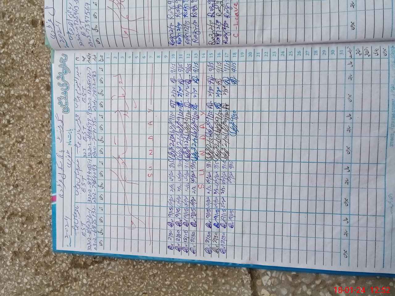 | CNIC | Full Name | Designation | R/C | Absence During Last Calender Month |