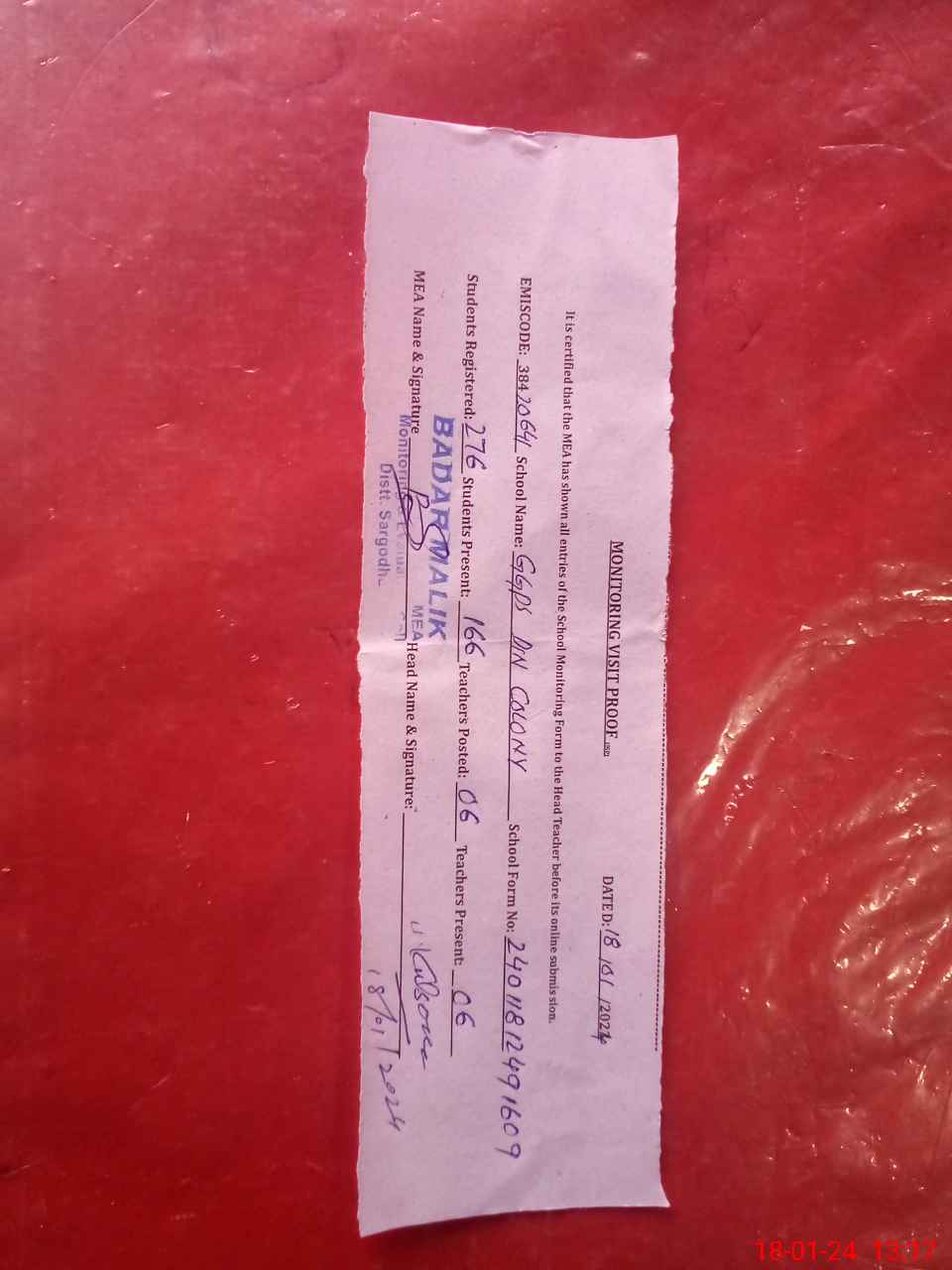 | EMIS Code: 38420641 | Name of School: GGPS DIN COLONY | |||