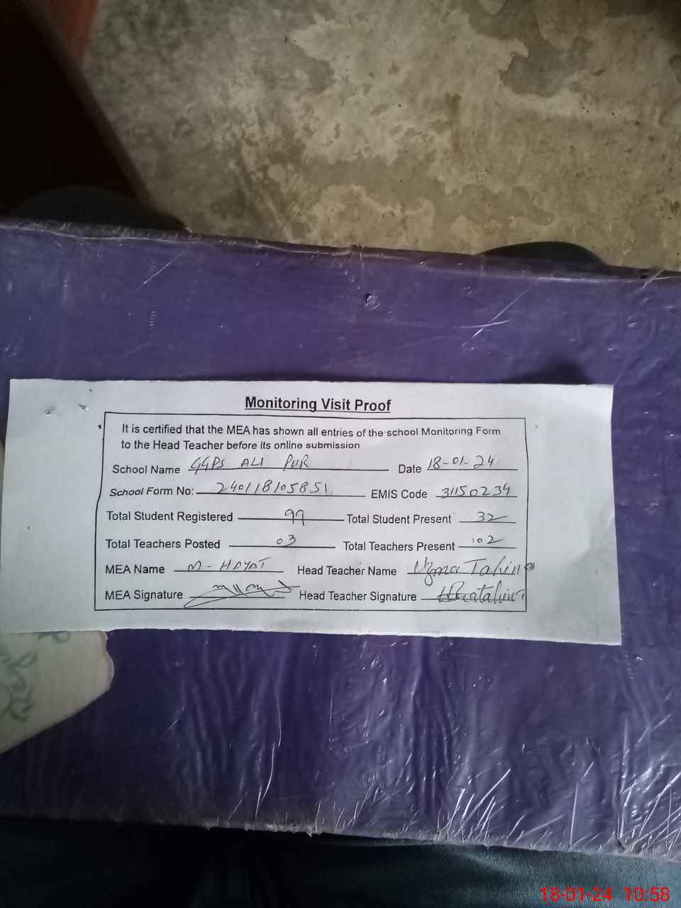 | EMIS Code: 31150234 | Name of School: GGPS ALI PUR | |||
