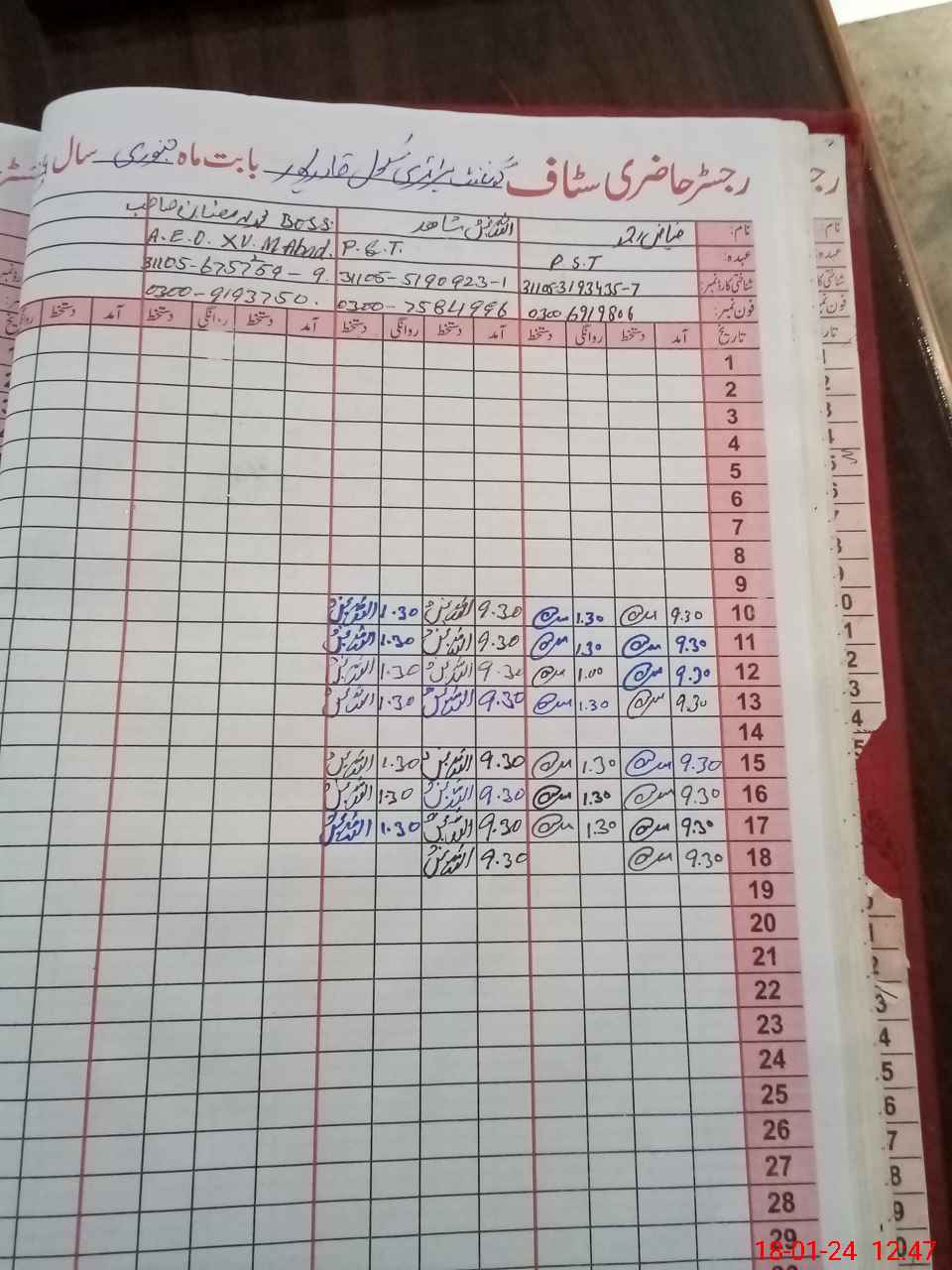 | Name: FI**** AH**** Designation: (School Headmaster's/Headmistress's) P S T Phone/Cell Number: 03**** |