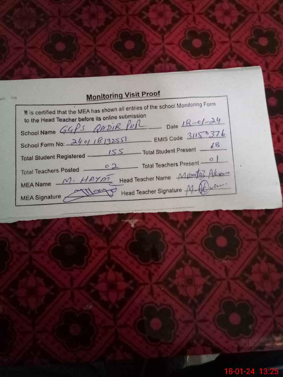 | EMIS Code: 31150376 | Name of School: GGPS QADIR PUR | |||