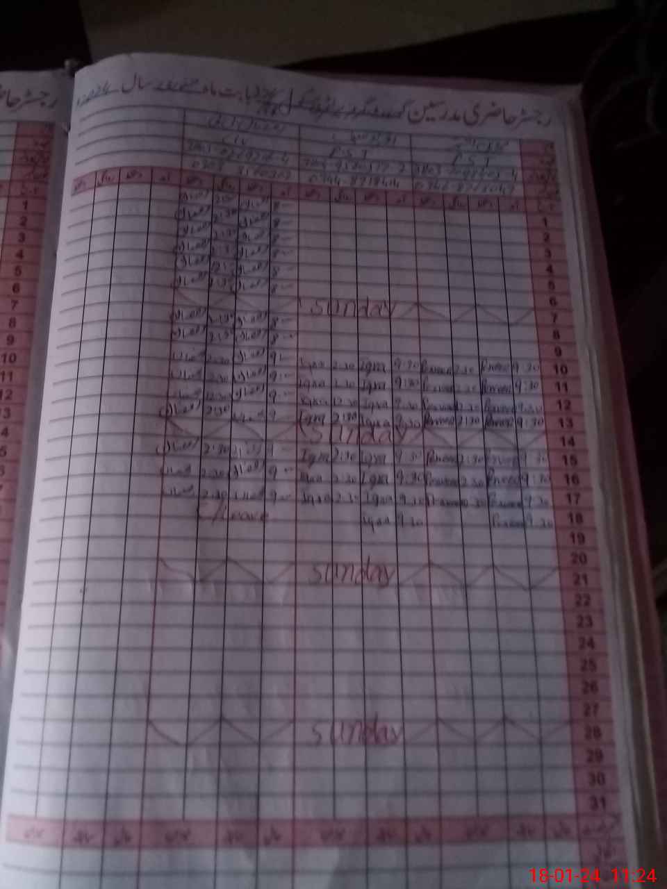 | CNIC | Full Name | Designation | R/C | Absence During Last Calender Month |