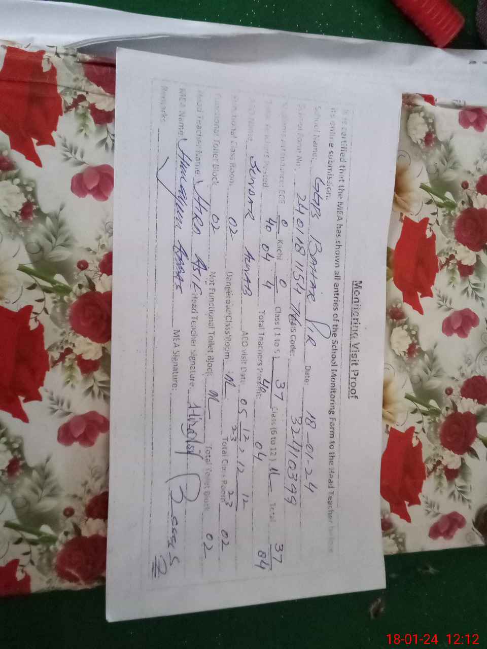 | Attendance Register | Head Teacher | MEA with School | Visit Proof |