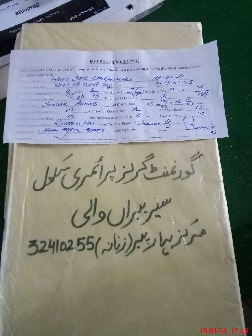 | EMIS Code: 32410255 | Name of School: GGPS SAIR BABRAN WALI | |||