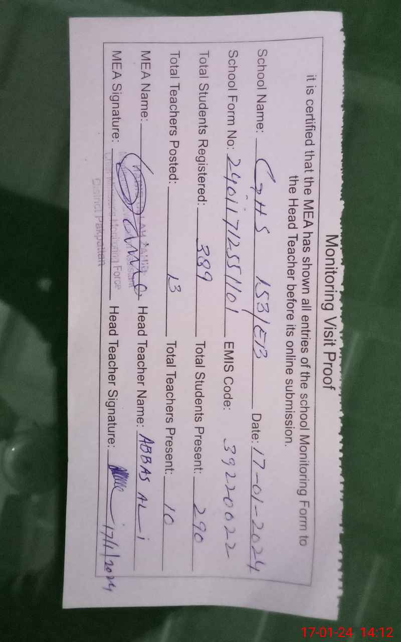 | EMIS Code: 39220022 | Name of School: GHS 153 EB | |||