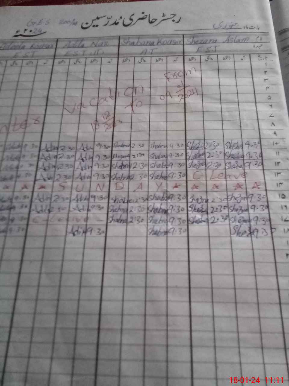 | Leave | Duty | Absent | Maternity | Medical | Ex- Pak |