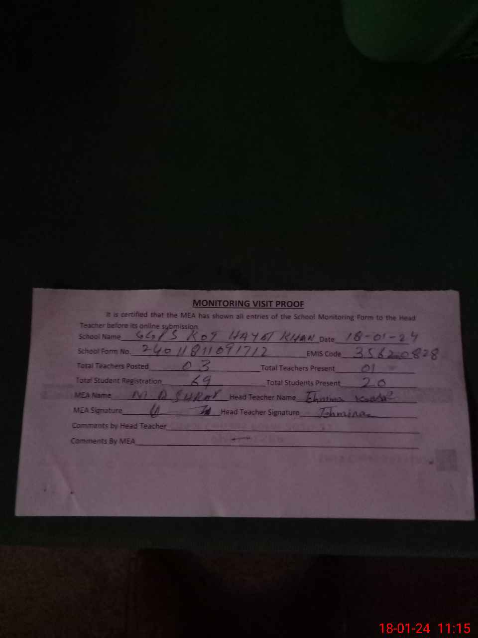 | EMIS Code: 35620828 | Name of School: GGPS KOT HAYAT KHAN | |||