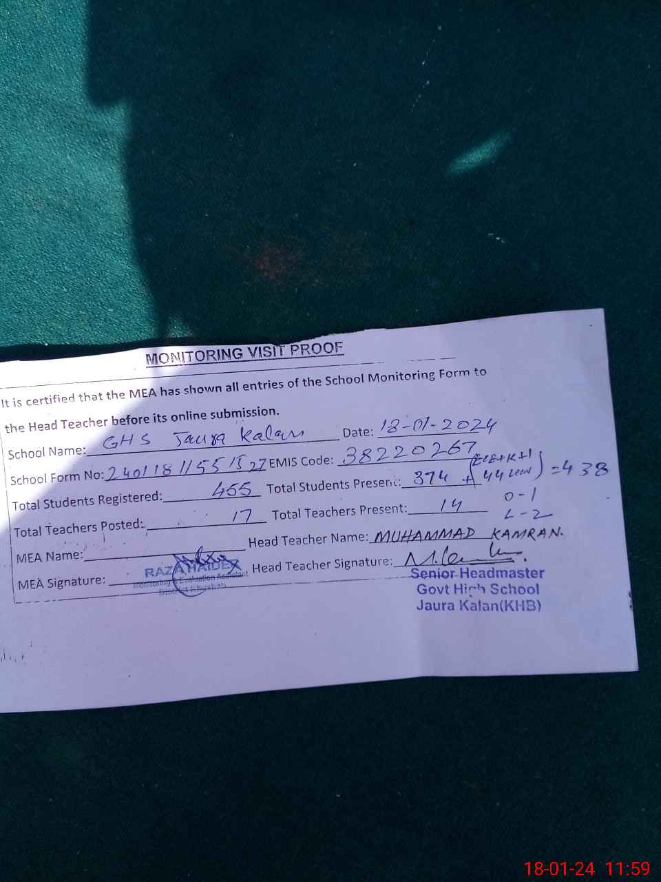 | EMIS Code: 38220267 | Name of School: GHS JAURA KALAN | |||