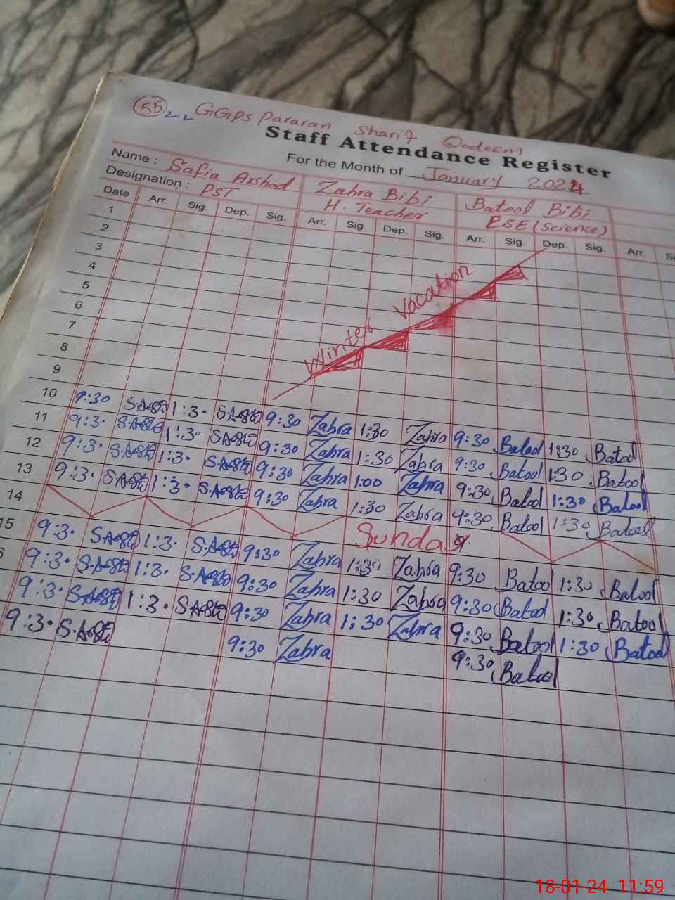 | Name: ZA**** BI**** Designation: (School Headmaster's/Headmistress's) PST/PTC/JV Phone/Cell Number: 03**** |