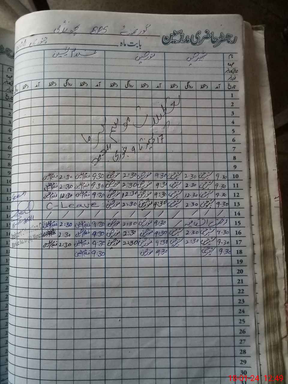 | CNIC | Full Name | Designation | R/C | Absence During Last Calender Month |