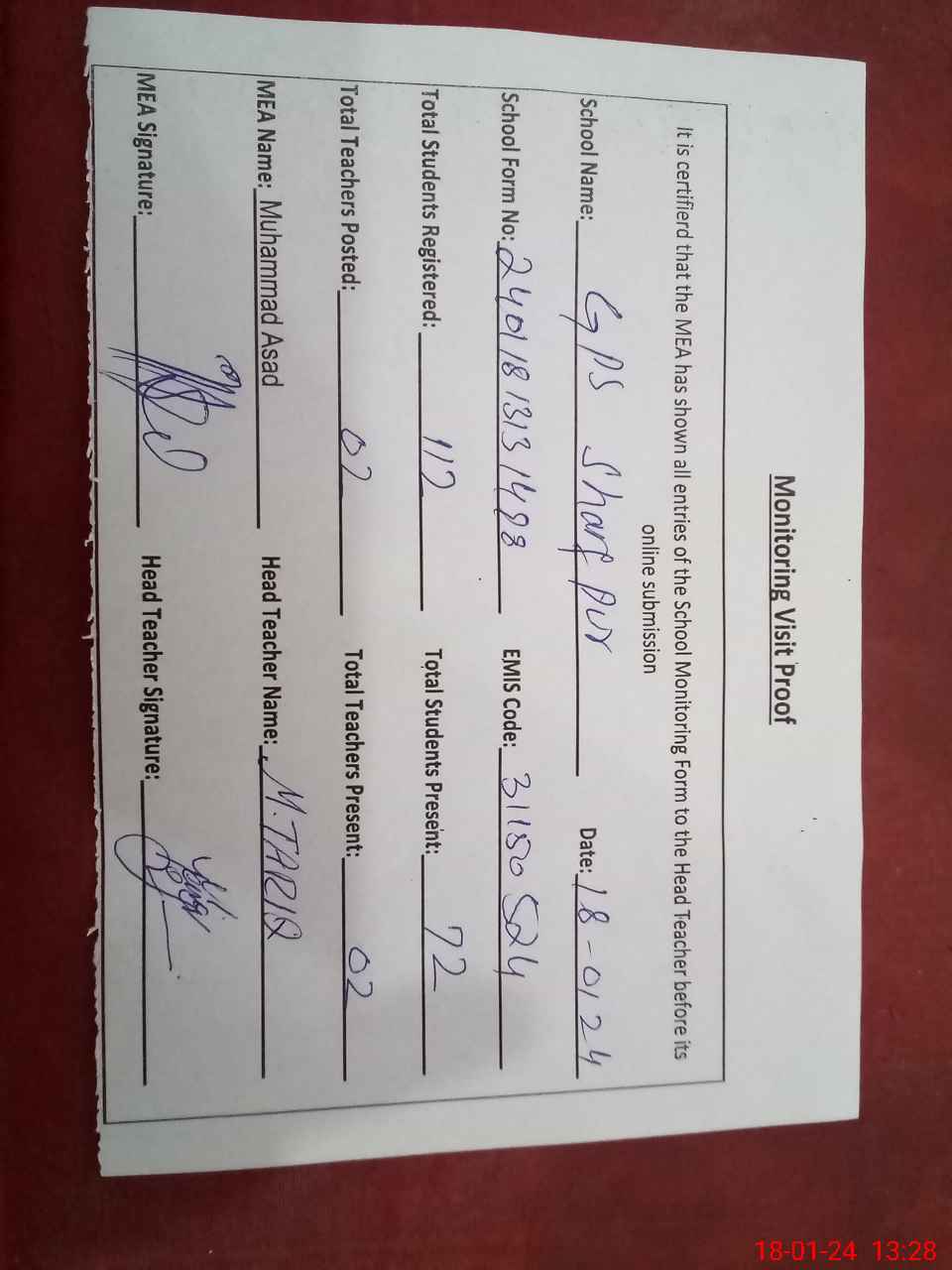 | EMIS Code: 31150524 | Name of School: GPS SHARAF PUR | |||