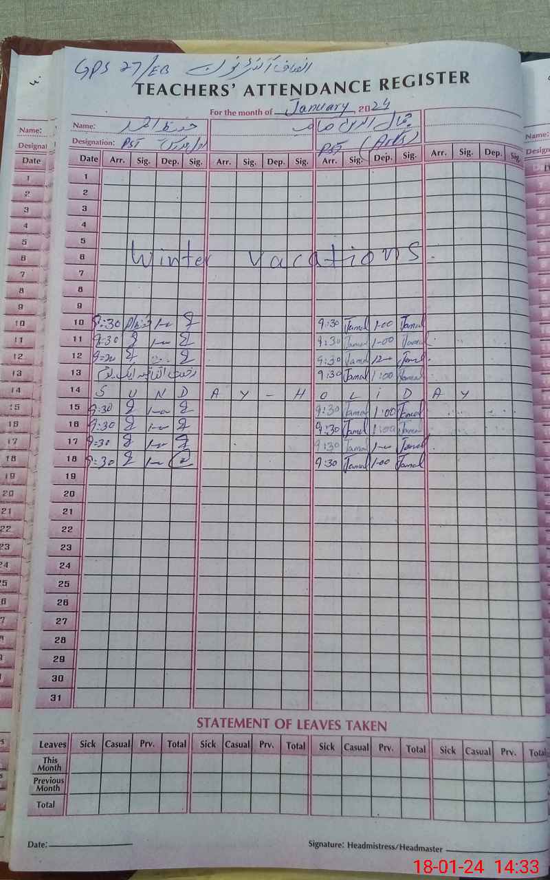 | Name: JA**** UDDI**** Designation: (School Headmaster's/Headmistress's) PST Phone/Cell Number: 03**** |