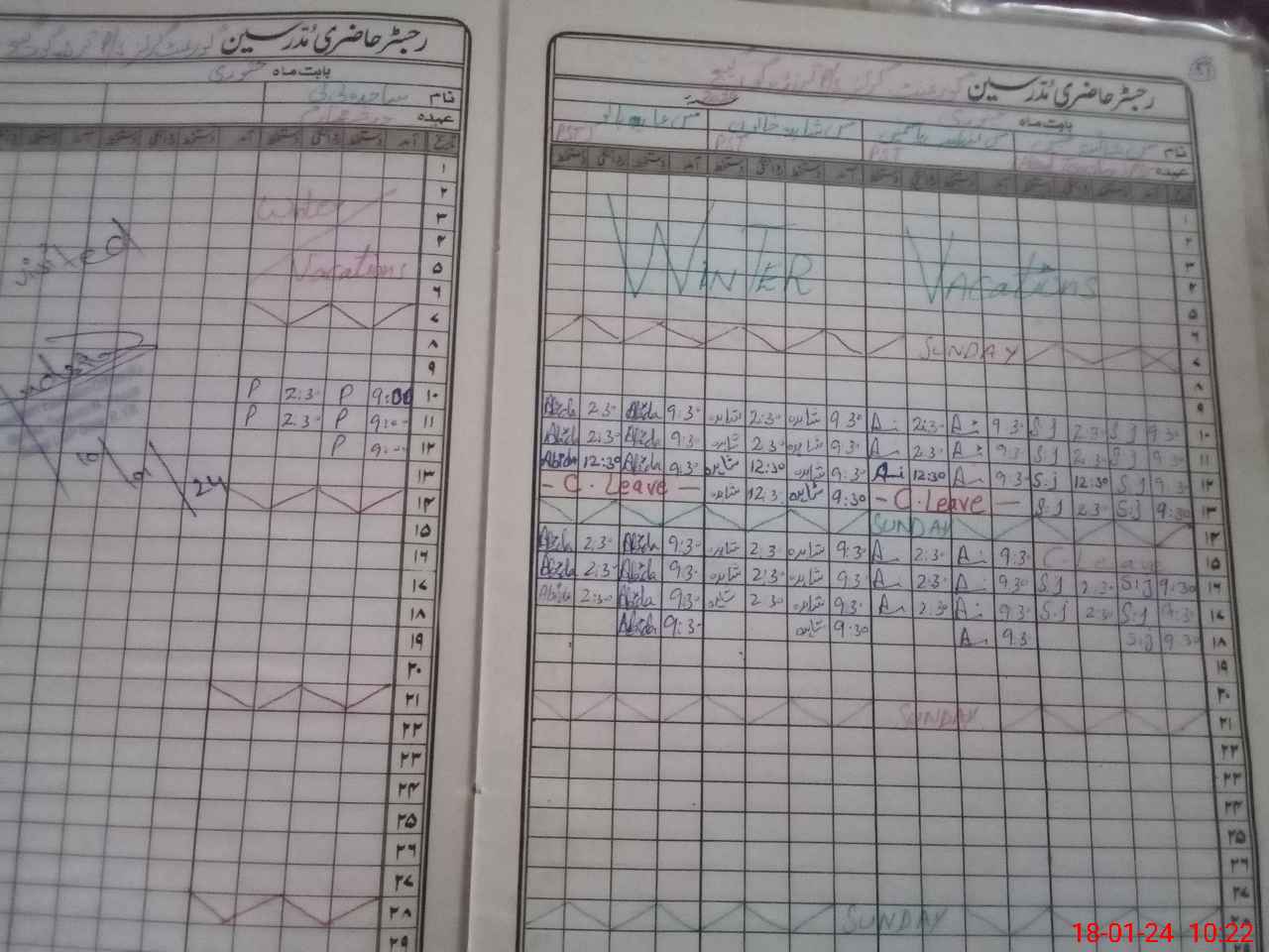 | Leave | Duty | Absent | Maternity | Medical | Ex- Pak |