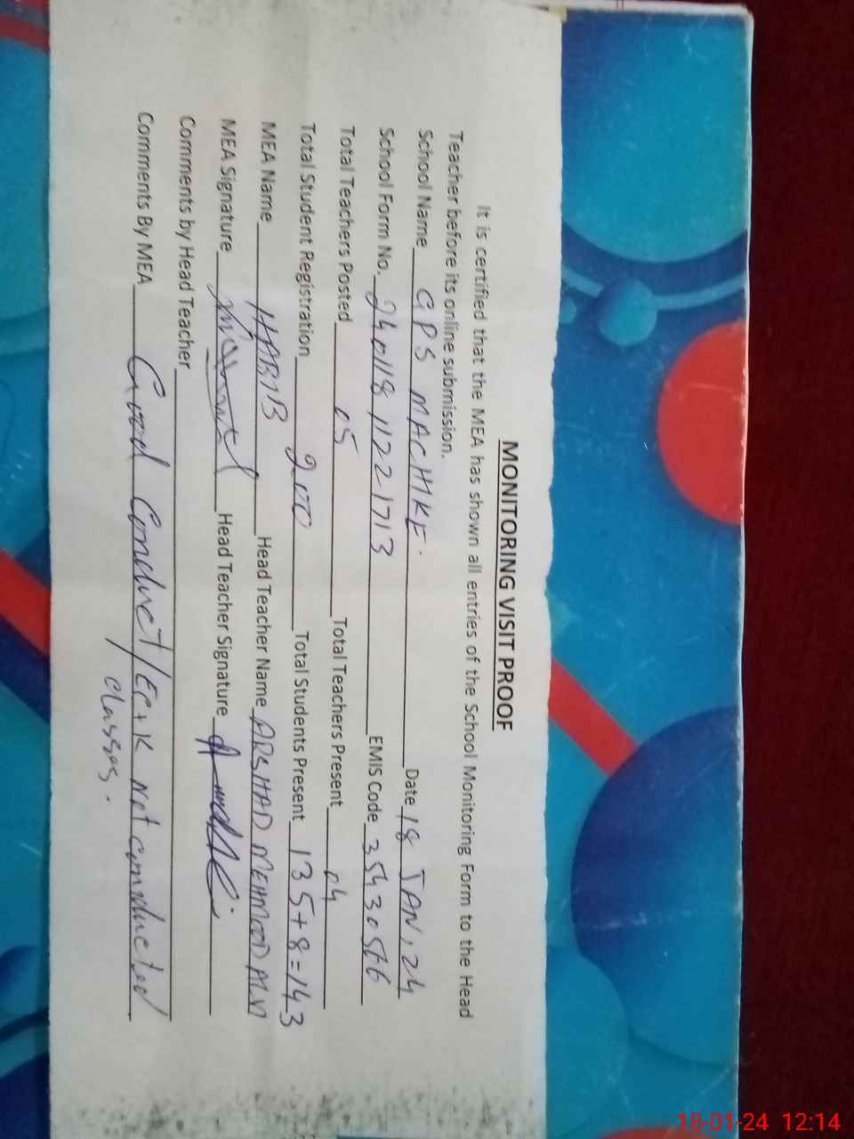 | EMIS Code: 35430566 | Name of School: GPS MACHIKE | |||