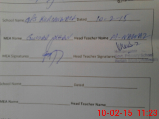 | Attendance Register | Head Teacher | MEA with School | Visit Proof |