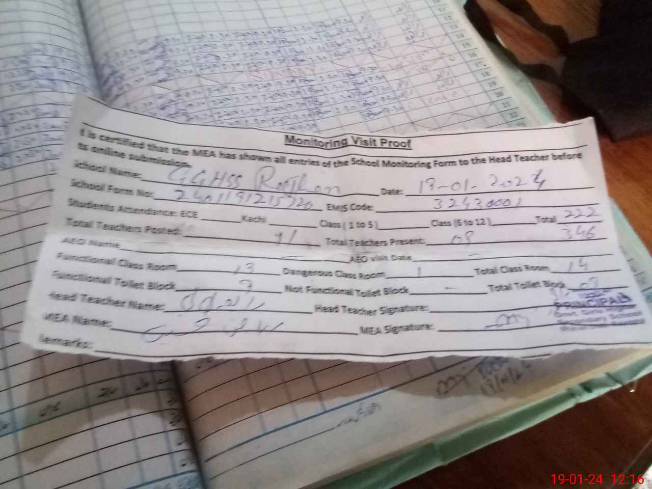 | EMIS Code: 32430001 | Name of School: GGHSS ROJHAN | |||