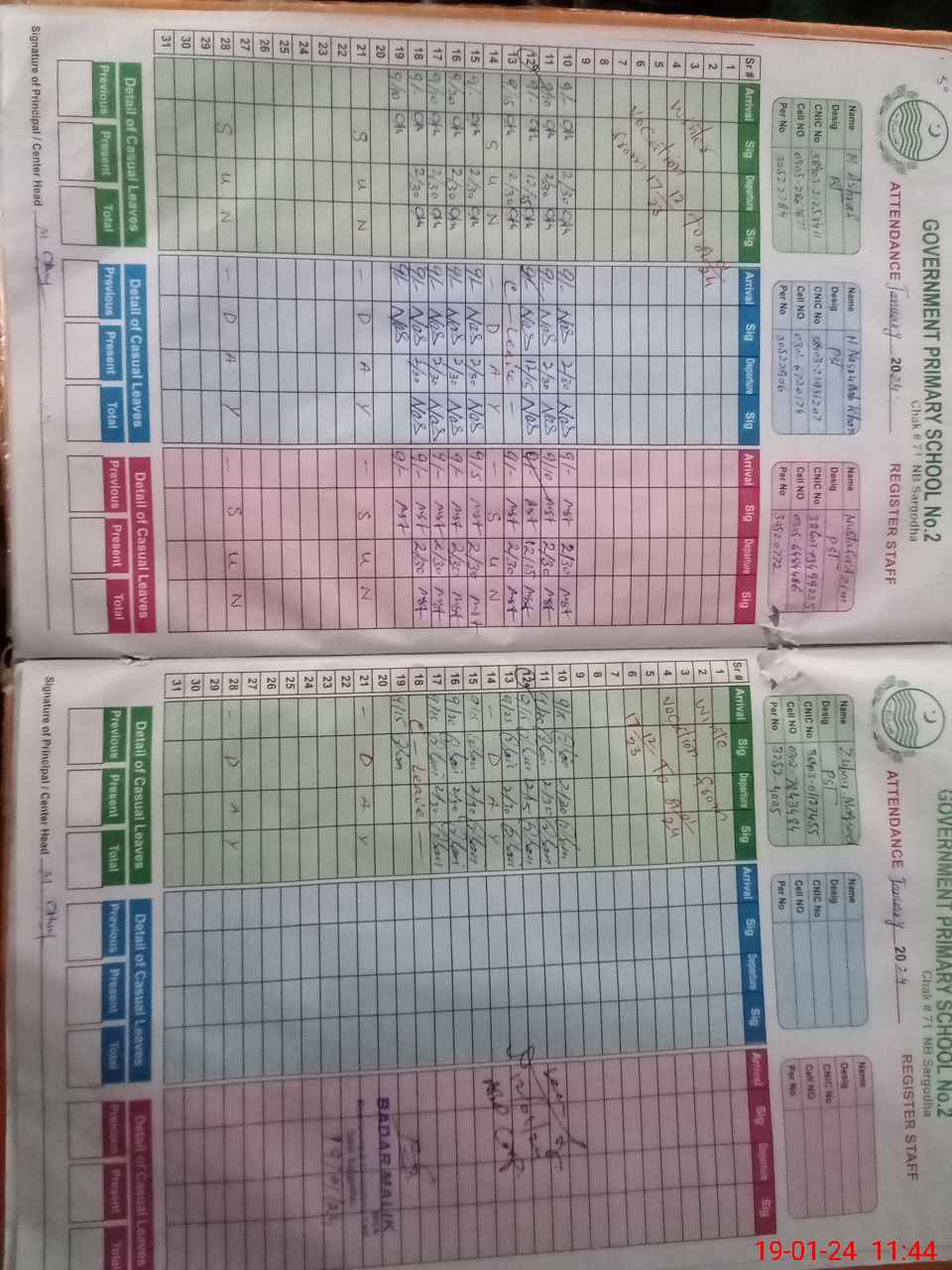 | CNIC | Full Name | Designation | R/C | Absence during last cal. month |