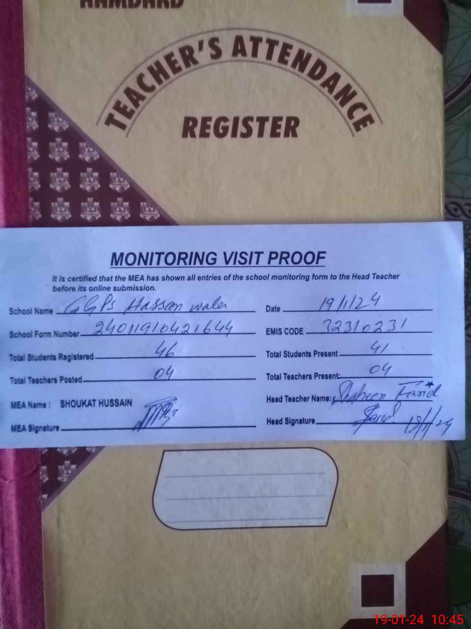 | EMIS Code: 32310231 | Name of School: GGPS HASSAN WALA | |||