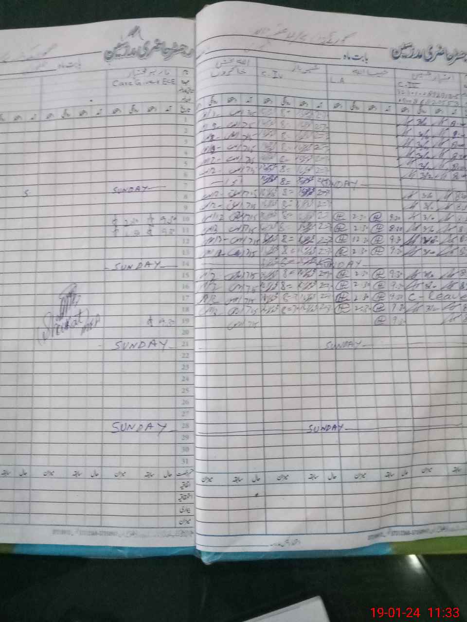 | CNIC | Full Name | Designation | R/C | Absence During Last Calender Month |