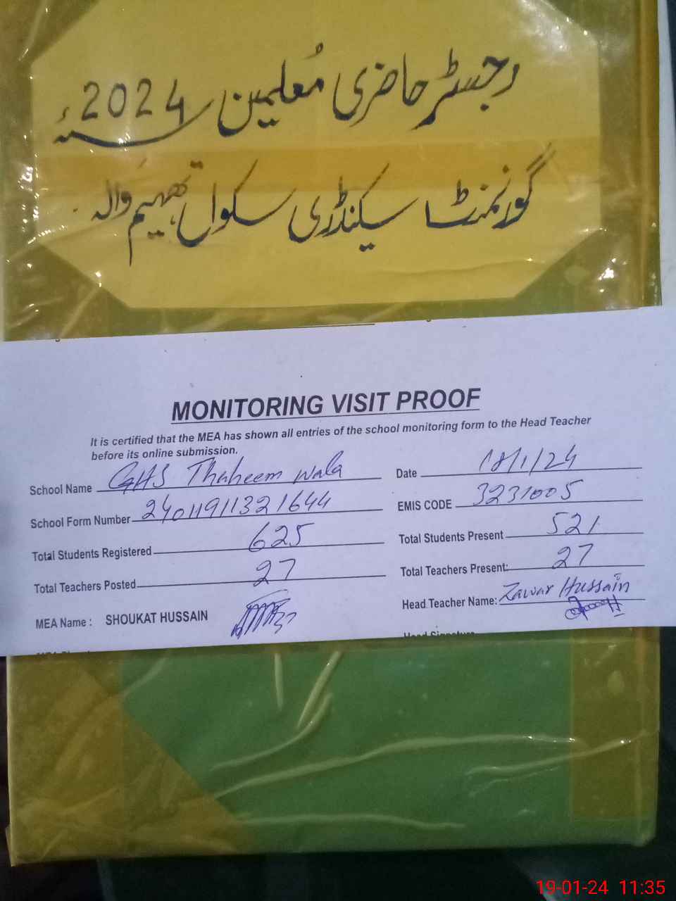 | Attendance Register | Head Teacher | MEA with School | Visit Proof |