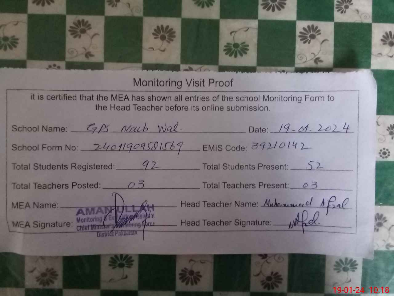 | EMIS Code: 39210142 | Name of School: GPS NAIB WAL | |||