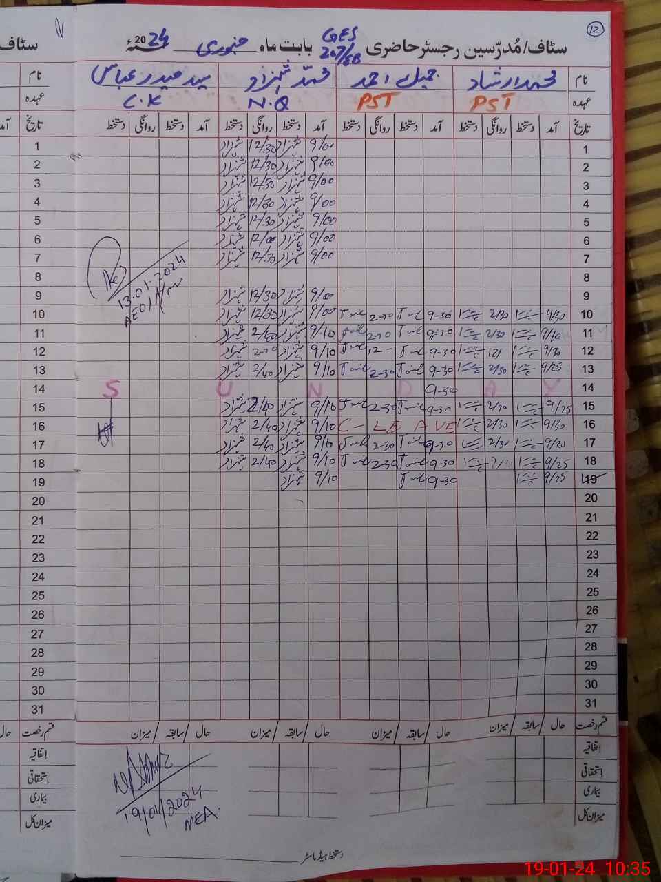 | Remarks (Use Separate Page if Required): Note Chowkidar Syed Haider Abbas was found absent shown on additional duty without letter of CEO | |||||