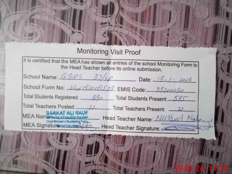| EMIS Code: 39210030 | Name of School: GGHS 37 SP PAKPATTAN | |||