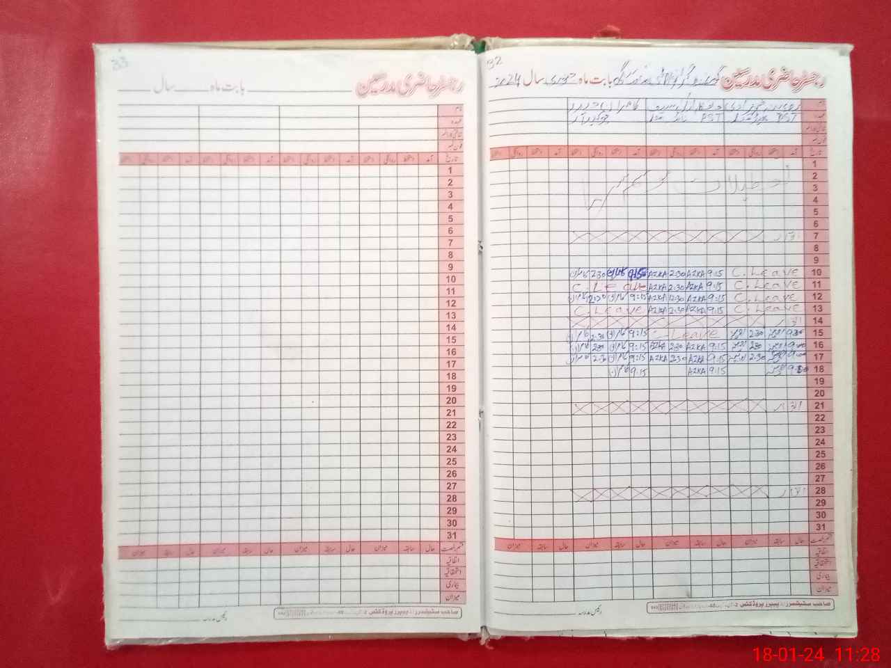 | CNIC | Full Name | Designation | R/C | Absence During Last Calender Month |