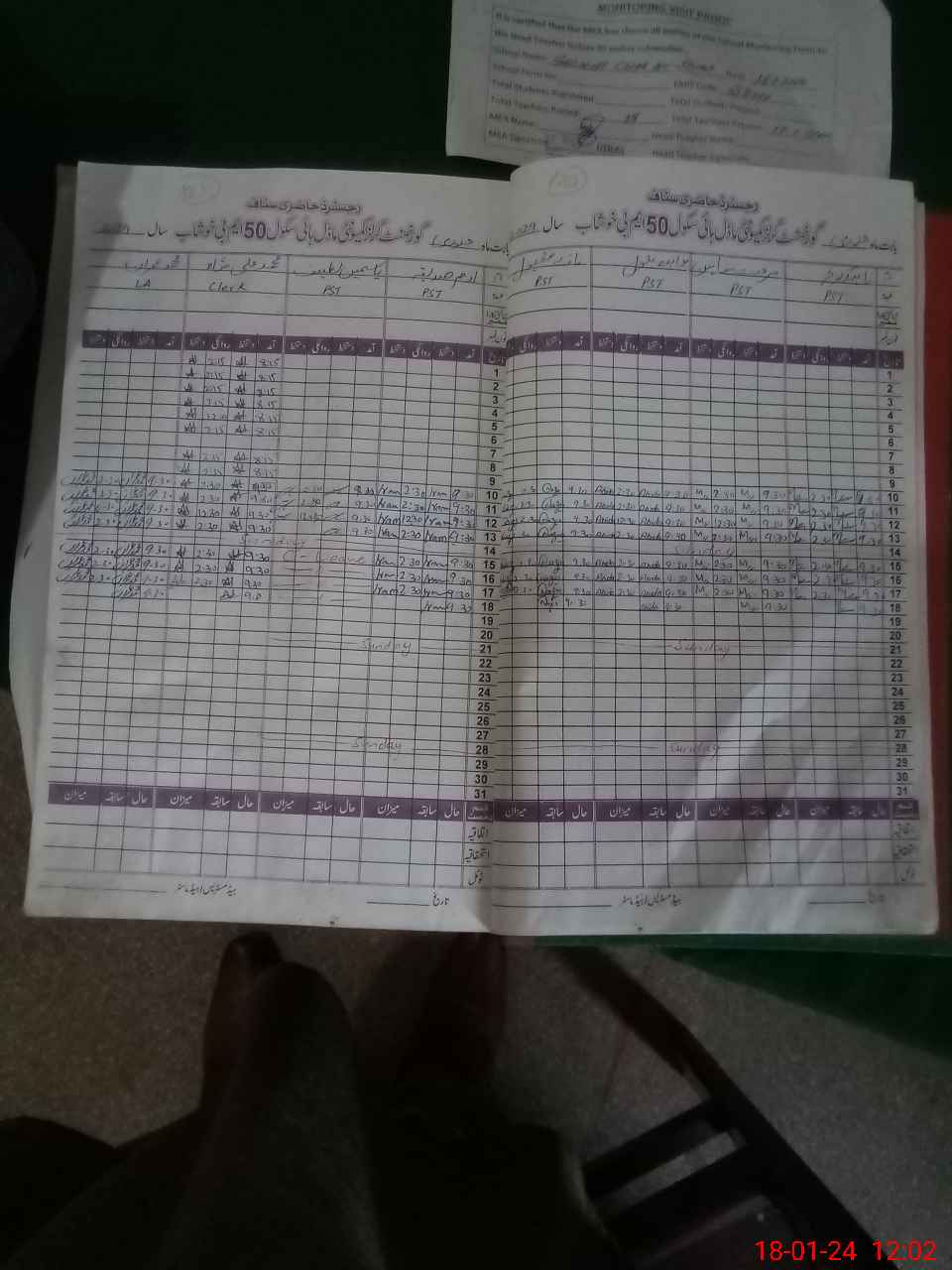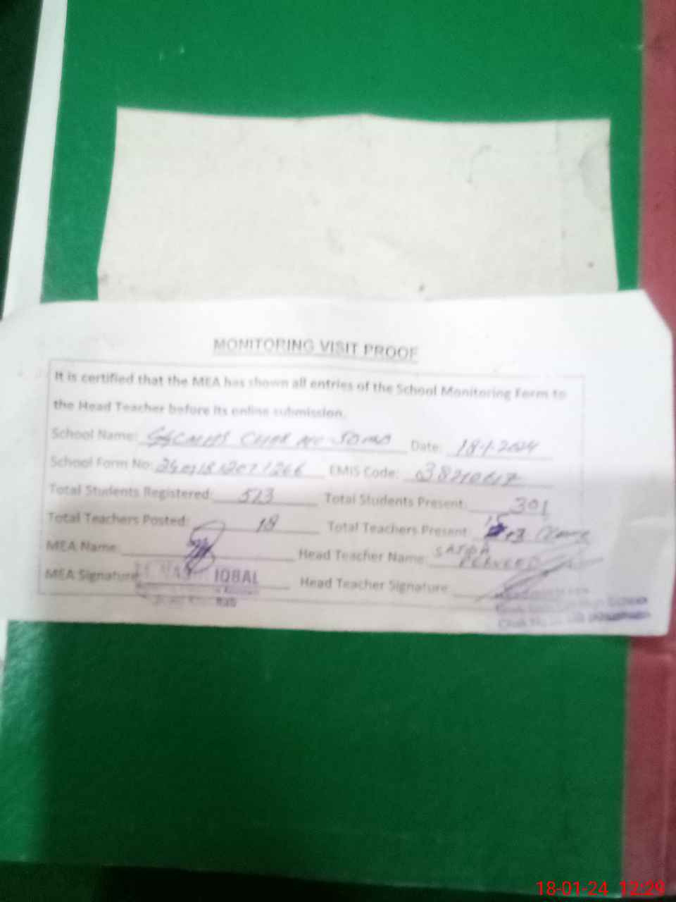 | Attendance Register | Head Teacher | MEA with School | Visit Proof |