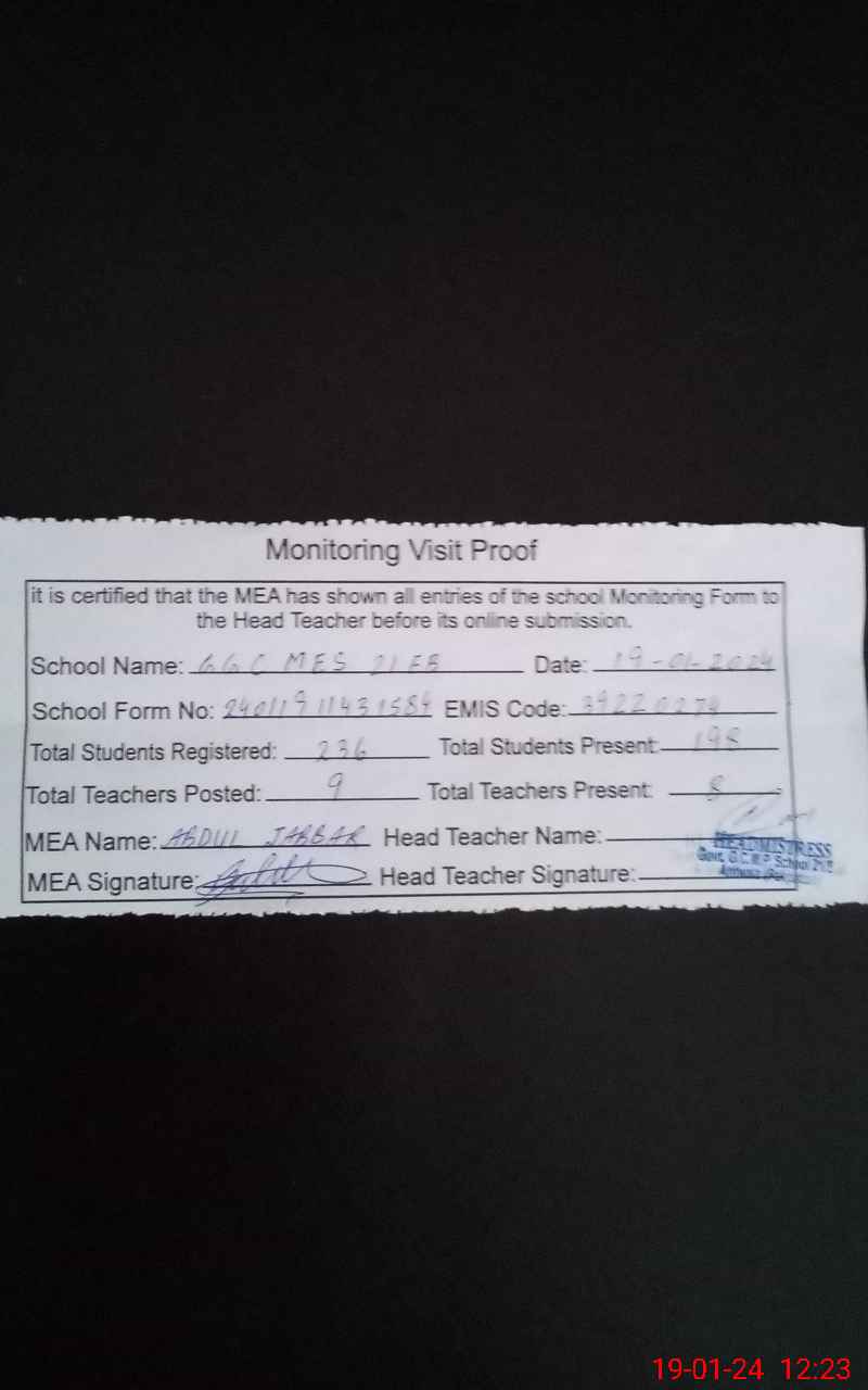 | Certified that this School was Inspected by the Undersigned MEA/DMO Today and the Information Stated Above is as Per Record. | |||||