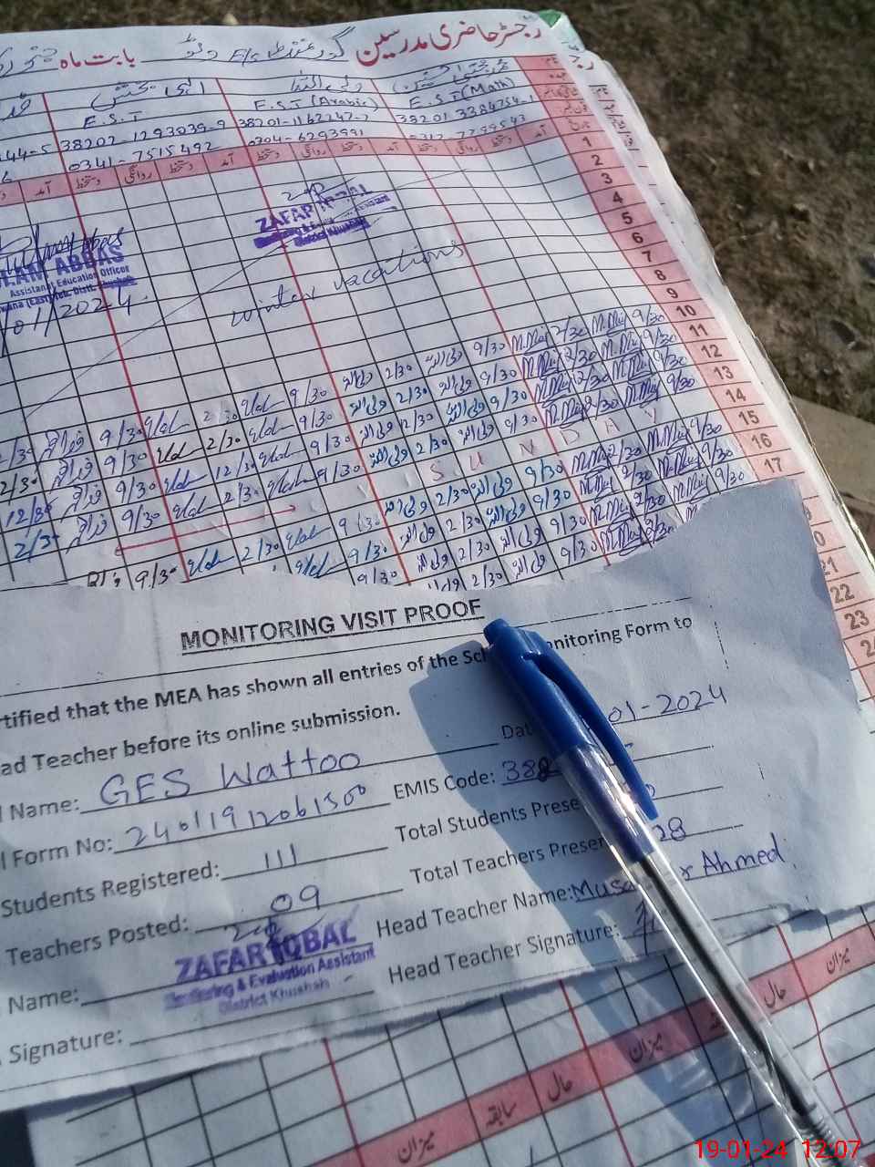 | Attendance Register | Head Teacher | MEA with School | Visit Proof |