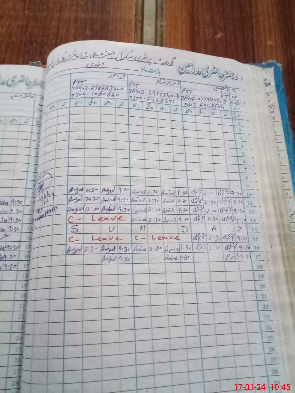 | CNIC | Full Name | Designation | R/C | Absence During Last Calender Month |
