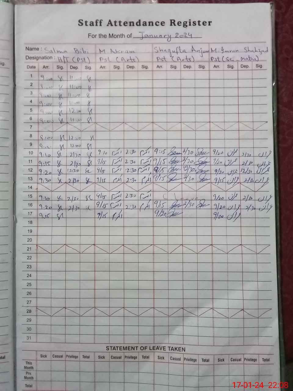 | Name: Sh**** An**** Designation: (School Headmaster's/Headmistress's) PST Phone/Cell Number: 03**** |