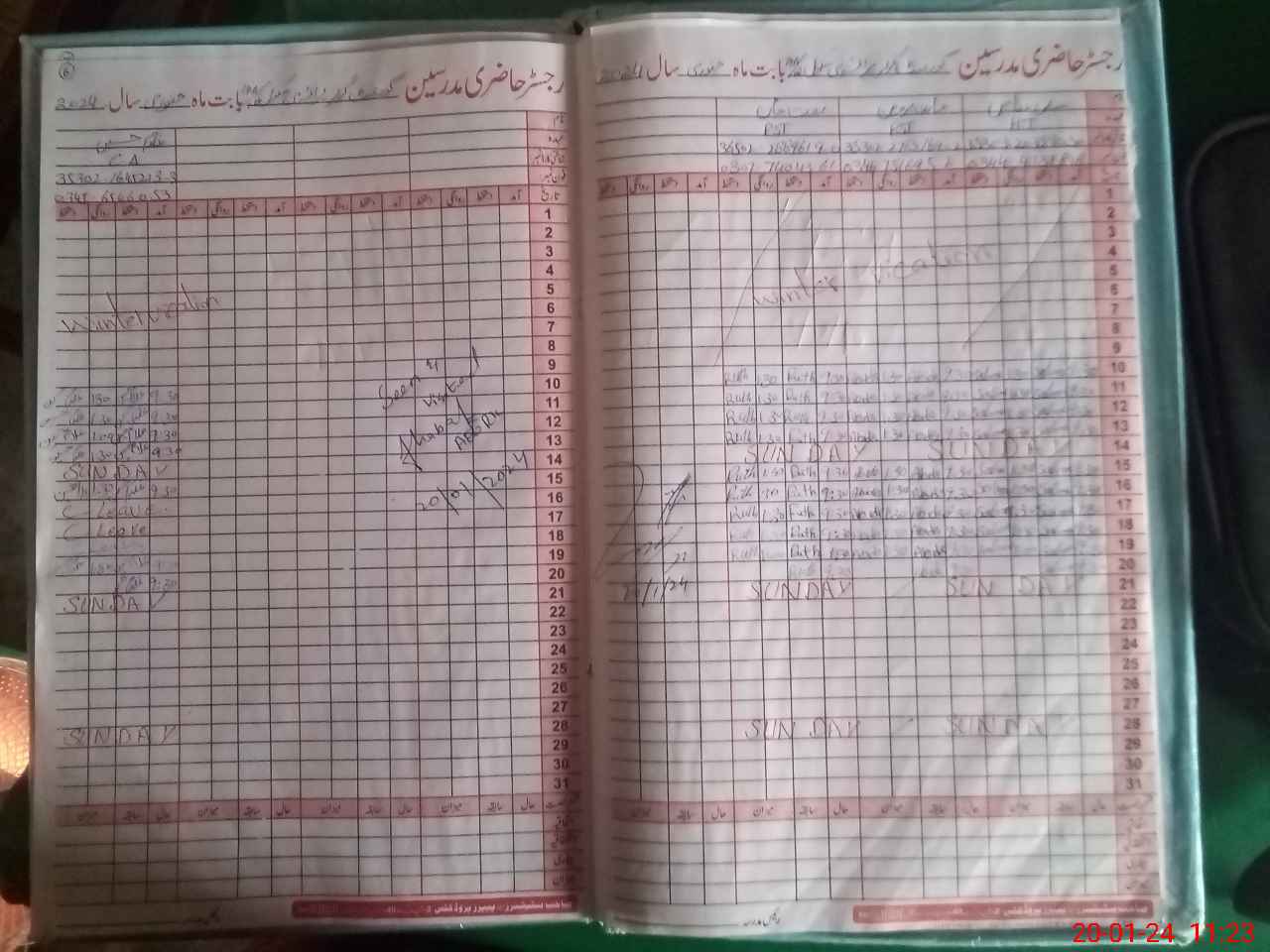 | CNIC | Full Name | Designation | R/C | Absence During Last Calender Month |