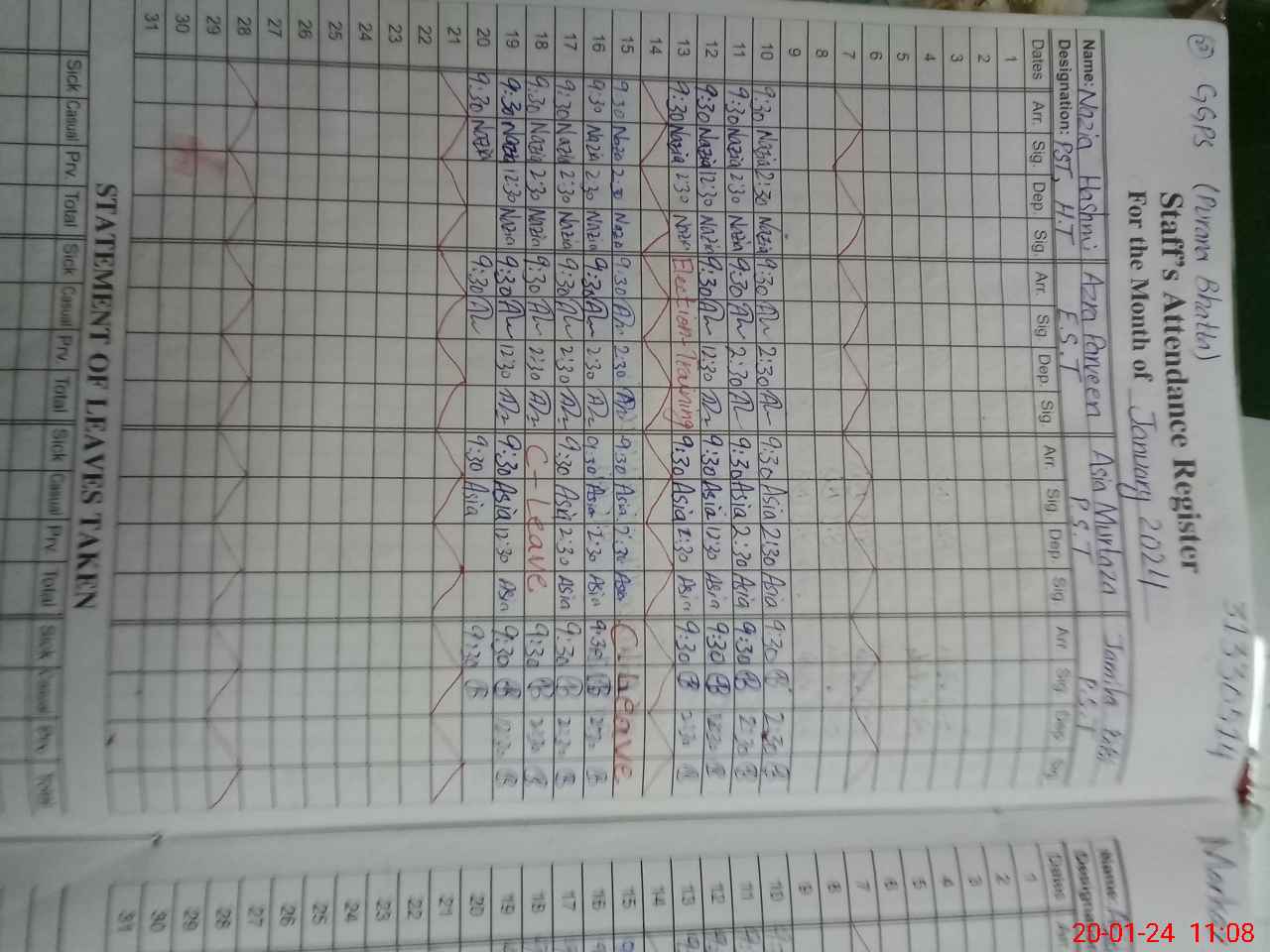 | 31**** | Ab**** Na**** Ka**** | 1 | 0 | 16 | 0 | 0 | 0 | 0 | 0 | 0 | 0 | Absent (Un-Authorized) | |