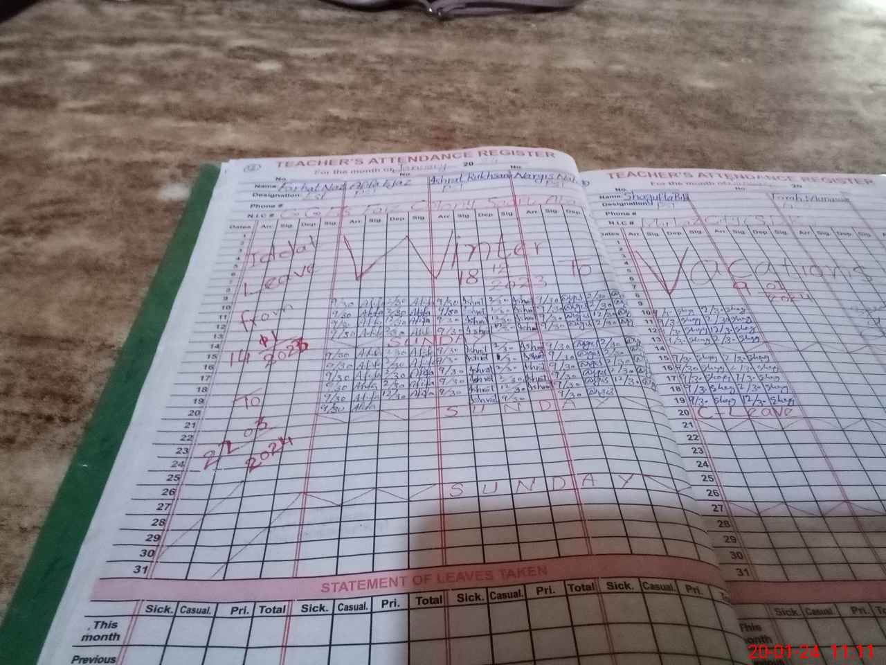 | 31**** | Sy**** Fa**** Na**** | Regular | 0 | 0 | 31 | 0 | 0 | 0 | 0 | 0 | 0 | Absent (Un-Authorized) | |
