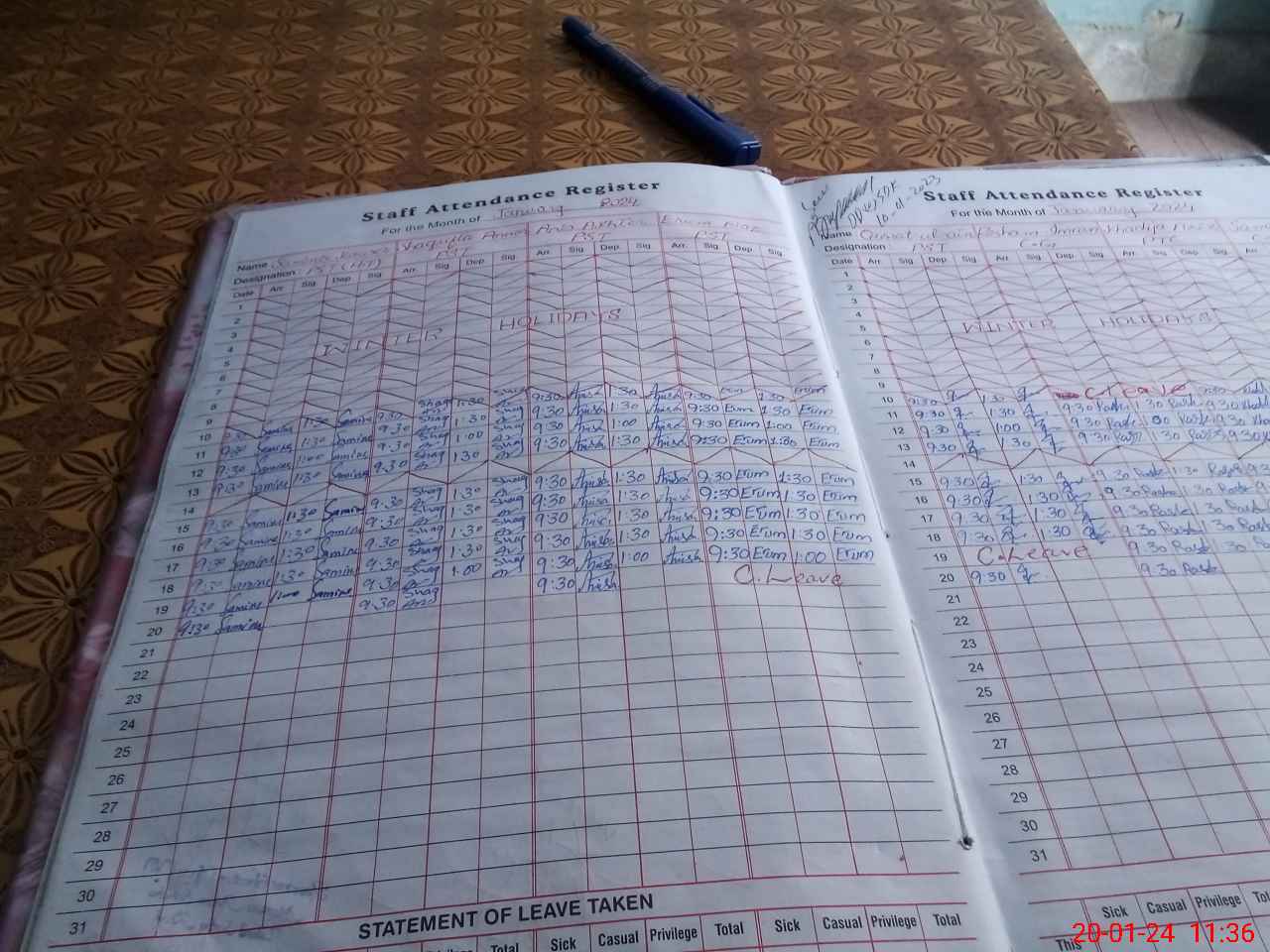 | 31**** | Er**** Na**** | PST | Regular | 1 | 0 | 0 | 0 | 0 | 0 | 0 | 0 | 1 | Casual |